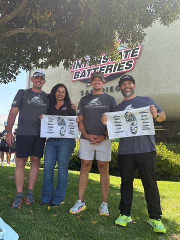 Interstate All Battery Center® of San Diego supported Semper Fi & America’s Fund during its 6th Annual PTSD Century Hike: Southern California with a Cheer Station Lunch. The powerful journey was dedicated to raising awareness for post-traumatic stress disorder (PTSD) as service members and veterans trekked 100 miles over five days, which included Cheer Station Stops like the one at 9345 Cabot Drive where members of the public joined fellow supporters to cheer on the hikers.